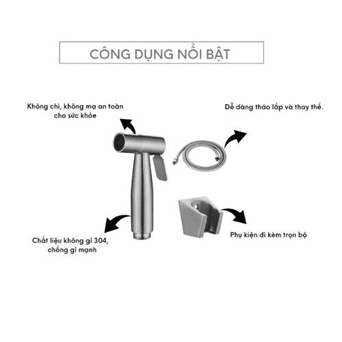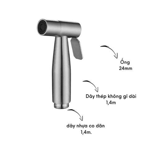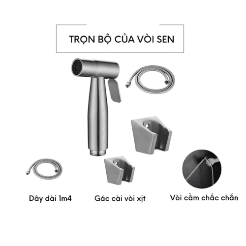 – Sản phẩm bao gồm: 1 Dây dài 1m4 + 1 Gác vòi Xịt + 1 vòi Xịt chắc chắn.